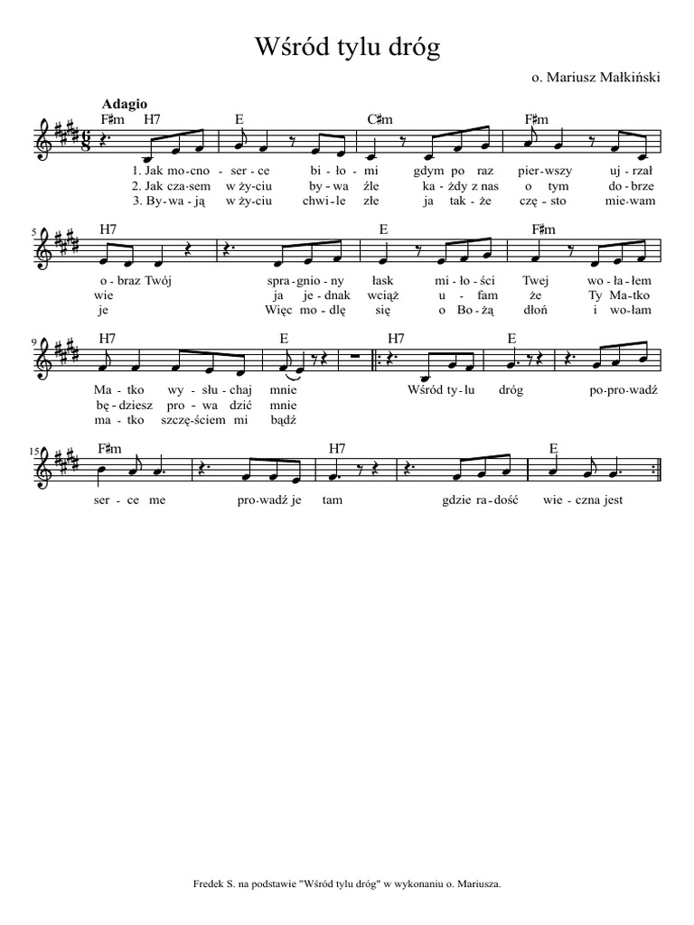 Wśród tylu dróg poprowadź serce me. Mariusz Małkiński Adagio 86 F m H7 E C m F m. Wśród tylu dróg poprowadź serce me.