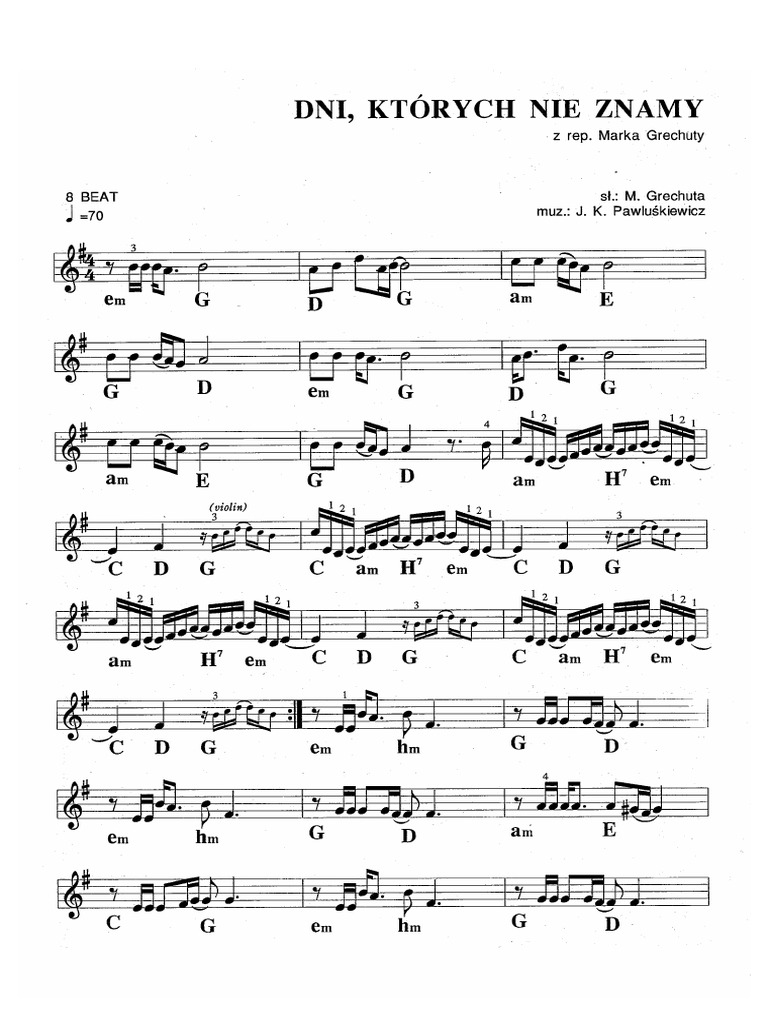 Czy Moze Ktos Podac Nuty Na Skrzypce Do Dni Ktorych Jeszcze Nie Znamy Marka Grechuta Najlepiej Brainly Pl